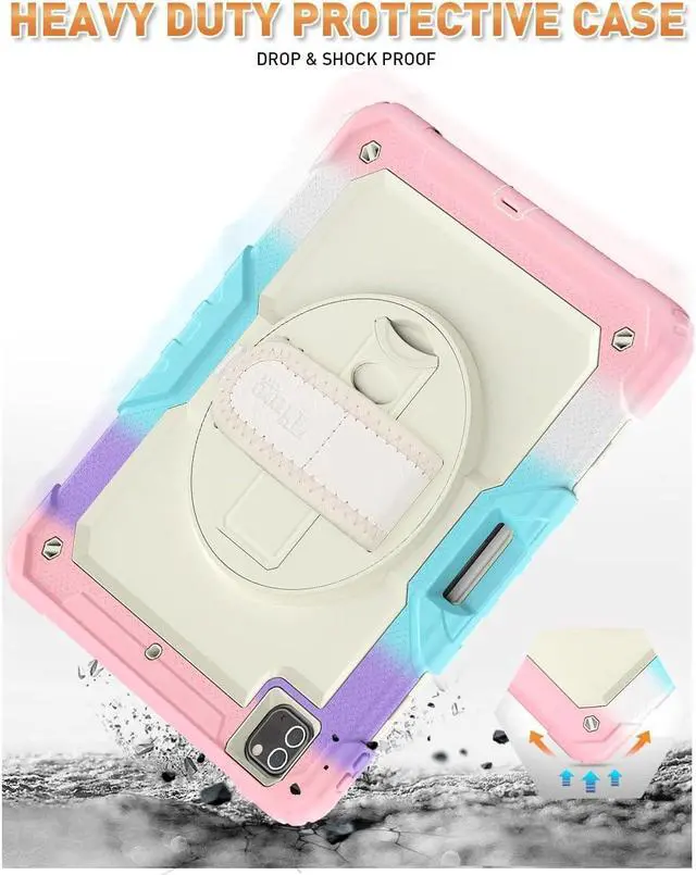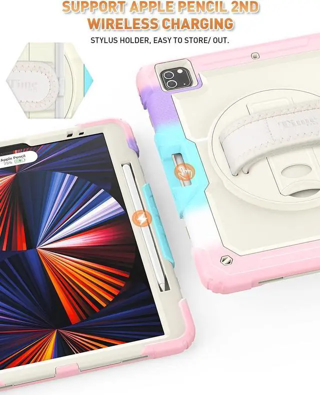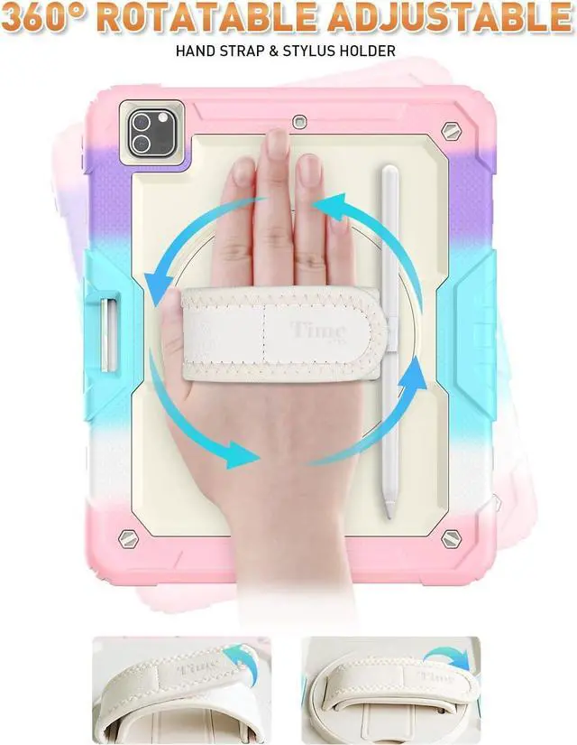 Stand + Shoulder Strap \u2014 The gorgeous 12.9 inch Liquid Retina XDR display is an amazing way to watch movies or draw your next masterpiece. However, it also needs a free display angle. This case provides a bracket that can rotate 360 stand and adjustable length shoulder strap. The stand can provide multi -angle support. The shoulder strap can hang your iPad Pro somewhere.