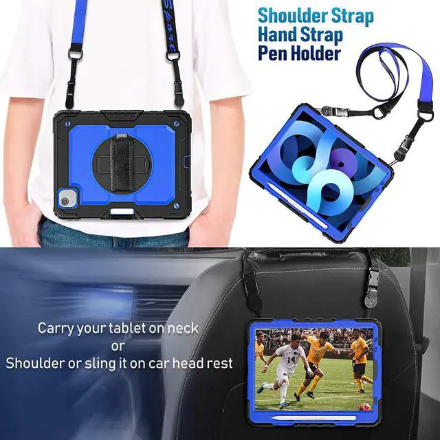 [Anti-Fall Hand /Shoulder Strap] The back turntable built-in a hand strap, when you put your hand into the strap, you can firmly grasp the center of gravity of your tablet. Additional adjustable shoulder strap up to 49 inches ,it can be attached to the case for carrying your device.