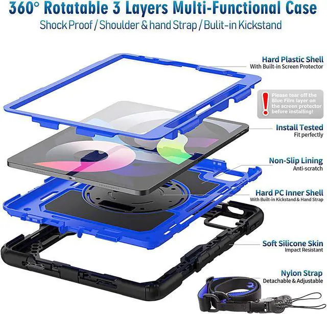 [All-Around Protection] 3 layers protection combined with "Front frame with built-in screen protector\u201d + \u201chard PC back cover\u201d + \u201csoft silicone outer shell". This rugged case offers commprehensive protection to your ipad when your ipad is dropped and Scratched.