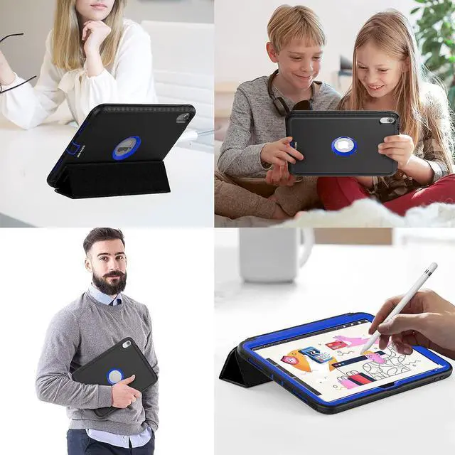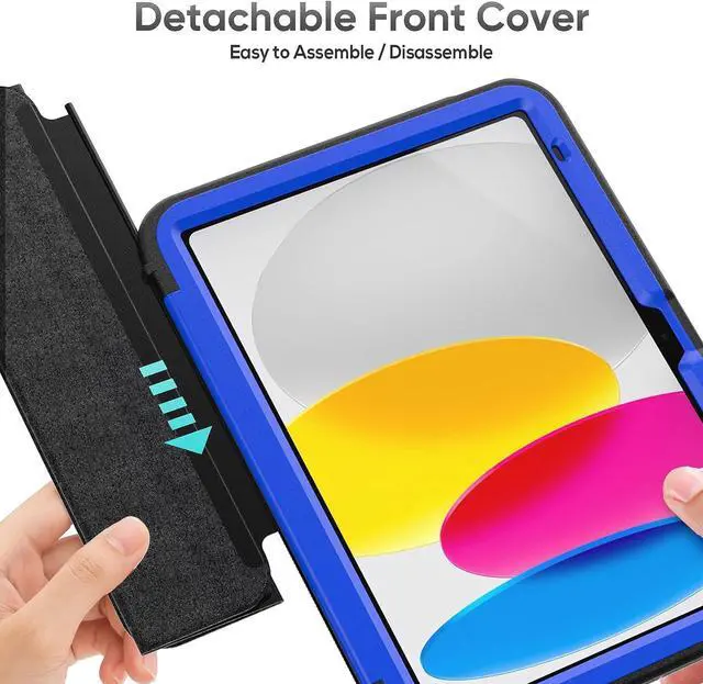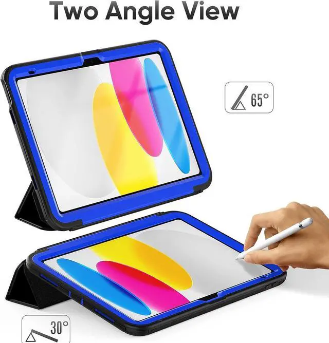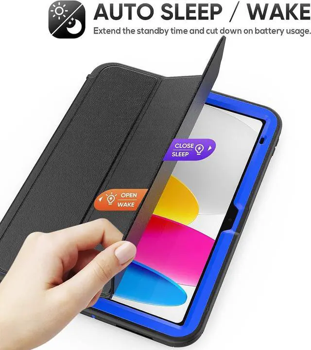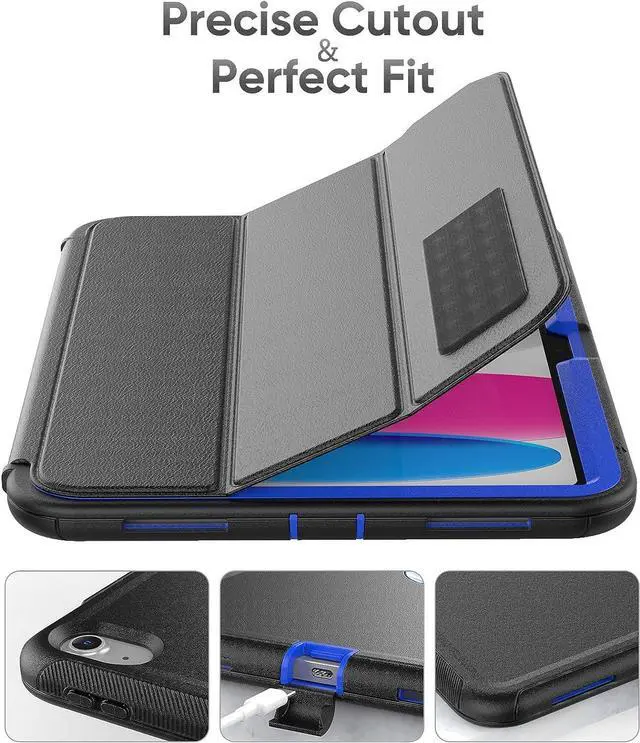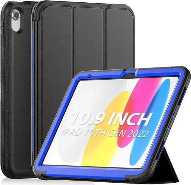iPad 10th Generation 10.9 Inch 2022 Release, Durable Sturdy Heavy Duty Shockproof Protection Folio Stand Case with Smart Cover Auto Sleep/Wake for iPad 10.9 Case, Black/Blue
