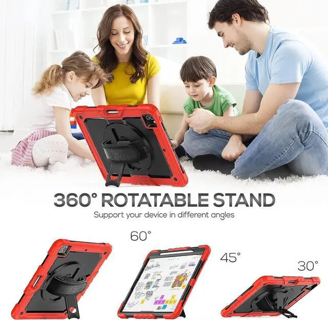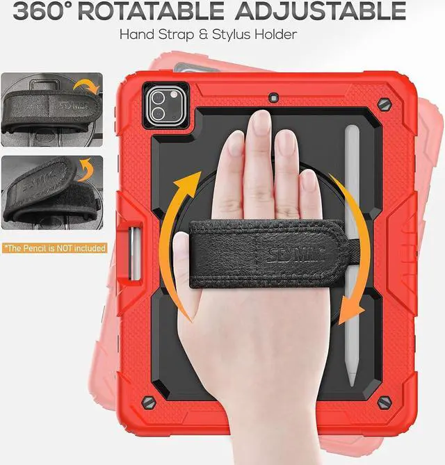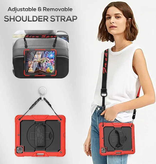 EASY-TO-USE HANDLE & SHOULDER STRAP- With the adjustable handle on the back, you can hold your tablet securely with single hand, and let your other hand free do other things. The adjustable and removable shoulder strap is user-friendly for carrying the device, it also could hang on the headrest of car seat or wherever you want.Supports the 2nd Gen pencil wireless charging. The pencil is not included.