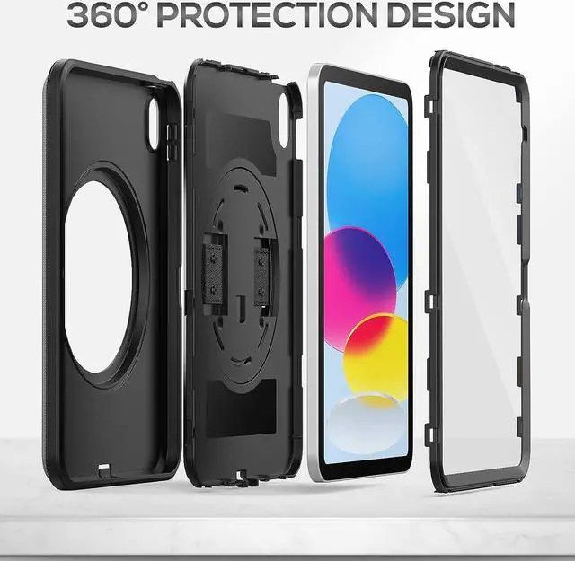 SHOCKPROOF PROTECTION- 3-layer total front-and-back protective case protects your iPad 10th Gen against drops, scratches, shocks and scuffs. The hard internal shell and soft TPU exterior deflect everyday action and accidents.Please Note: No Built-in Screen Protector