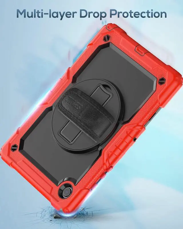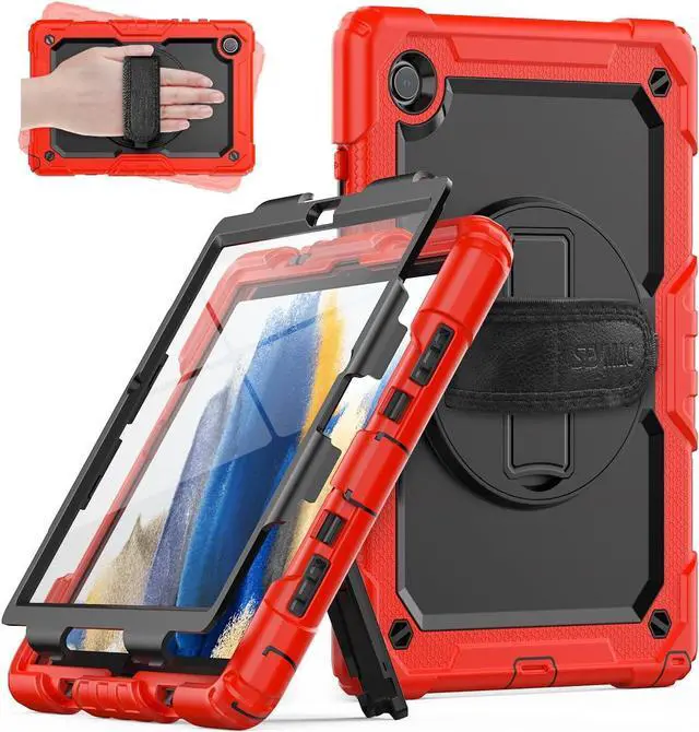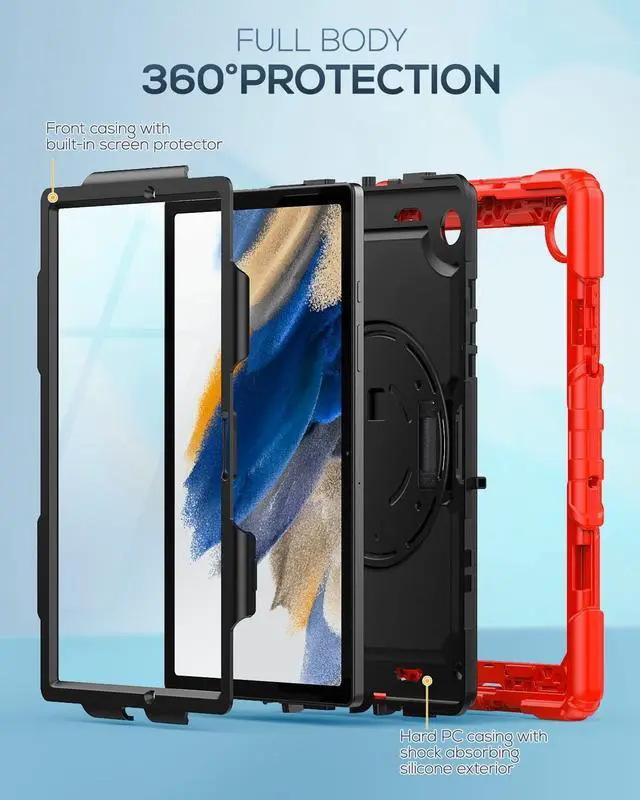 FULL PROTECTION- 3-layer total front-and-back protective case protects your Galaxy Tab A8 10.5'' against drops, scratches, shocks and scuffs. The hard internal shell, soft silicone exterior and built-in screen protector deflect everyday action and accidents. Soft-touch material offers a comfortable grip.