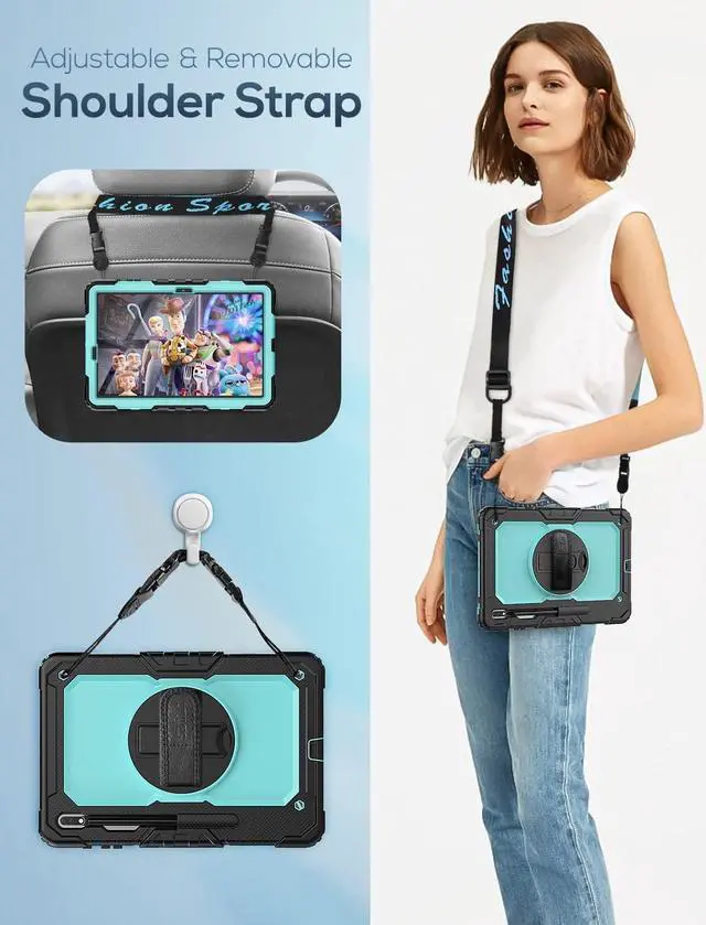 EASY-TO-USE HAND & SHOULDER STRAP- With the adjustable handle on the back, you can hold your tablet securely with single hand, and let your other hand free do other things. The adjustable and removable shoulder strap is kids-friendly for carrying the device, it also could hang on the headrest of car seat or wherever you want.