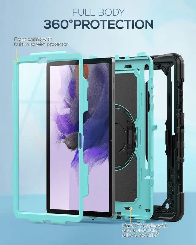 FULL PROTECTION- 3-layer total front-and-back protective case protects your Galaxy Tab S7 Fe/Tab S8 Plus against drops, scratches, shocks and scuffs. The hard internal shell, soft silicone exterior and built-in screen protector deflect everyday action and accidents. Soft-touch material offers a comfortable grip.