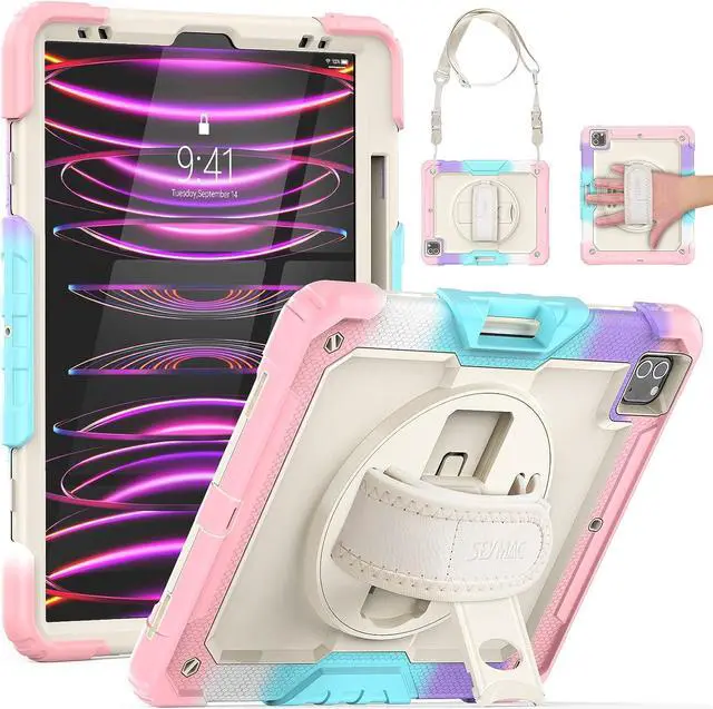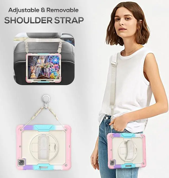 EASY-TO-USE HANDLE & SHOULDER STRAP- With the adjustable handle on the back, you can hold your tablet securely with single hand, and let your other hand free do other things. The adjustable and removable shoulder strap is user-friendly for carrying the device, it also could hang on the headrest of car seat or wherever you want.Supports the 2nd Gen pencil wireless charging. The pencil is not included.