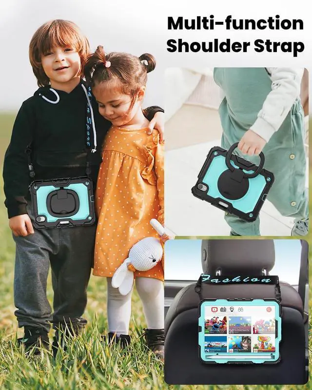 Adjustable Shoulder Strap: With adjustable shoulder strap, this iPad mini 6 case allows your kids to carry the iPad indoors or outdoors easily and safely. Great for boys and girls taking to school and travel. It also can be hung on the car seat or other place to use.