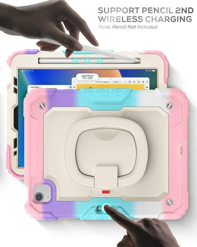 [Pencil Holder & Precise Port] The pencil holder support Pencil 2nd Gen wireless charging and make it easy to pick up and put down. The precise ports allow access to all buttons, controls and ports without having to remove the tablet from the case. Port plugs of the case prevent dust from entering into iPad air 5th/4th generation case.