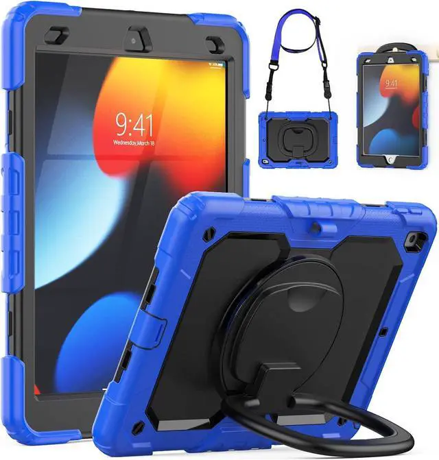 [FULL PROTECTION WITH SCREEN PROTECTOR] With the built-in screen protector, the iPad is totally encased and feels safe in it. 3-layer front-and-back inner shell and shock absorbing silicone design keeps your iPad protected to the max against drops, scratches, shocks and scuffs. Soft-touch material offers a comfortable grip and raised edges protect every corner of your iPad.