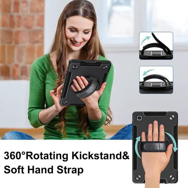 Samsung tablet a7 lite case with a soft hand strap, portable shoulder strap, and swivel stand. The 360-degree swivel stand provides multi-angle viewing, perfect for kids. You can take your tablet anywhere and don't have to worry about your tablet slipping out of your hands while traveling, working, or playing games with your kids.