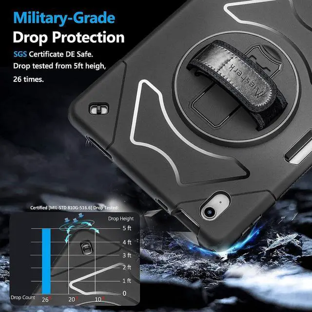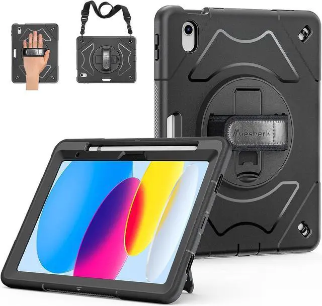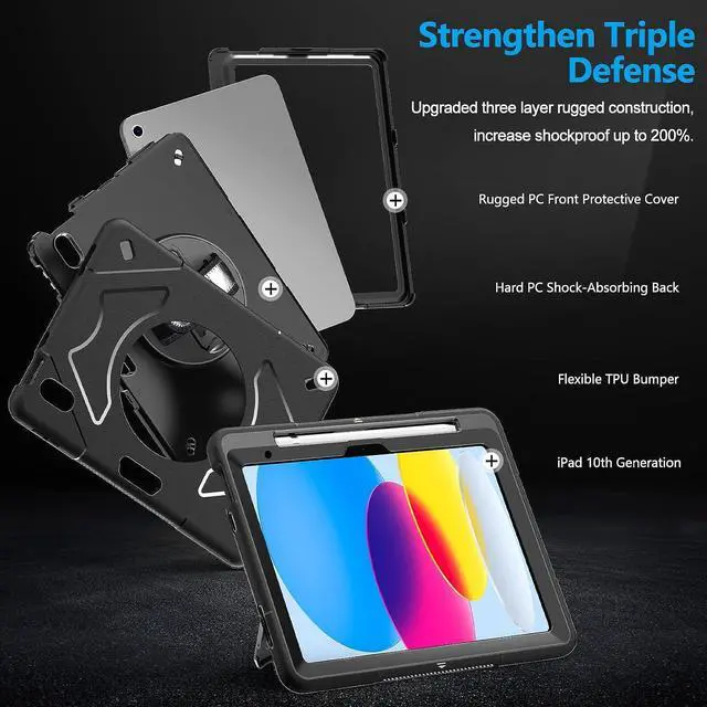 ENHANCED FULL-BODY PROTECTION &10-SHOCK: Case for iPad 10th gen exceed 2X Military Grade Drop Test Standard [MIL-STD 810G-516.6], Triple full-body heavy-duty protection provides up to 15ft drop protection, made of 2 durable PC and 1 flexible TPU bumper lasts 10× shock-resistant. Upgrade built-in sponge technology adds extra heat-dissipation.