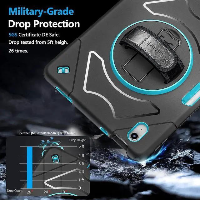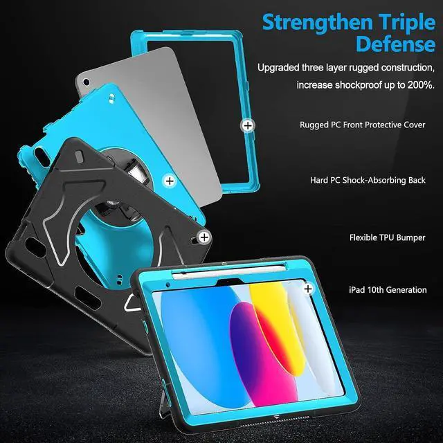 ENHANCED FULL-BODY PROTECTION &10-SHOCK: Case for iPad 10th gen exceed 2X Military Grade Drop Test Standard [MIL-STD 810G-516.6], Triple full-body heavy-duty protection provides up to 15ft drop protection, made of 2 durable PC and 1 flexible TPU bumper lasts 10× shock-resistant. Upgrade built-in sponge technology adds extra heat-dissipation.
