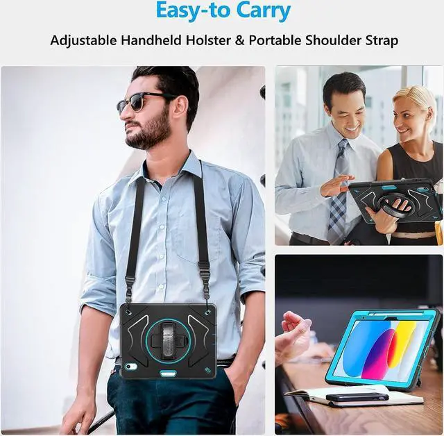 Precise cutout perfectly aligns up to ports, controls to easily access all iPad functions without having to remove the iPad 10th Generation from the case. Shock prevention keeps away from shocks, port covers of the case prevent dust from entering into the iPad.