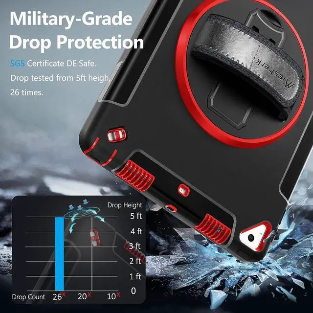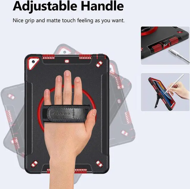 STABLE ROTATABLE KICKSTAND & ADJUSTABLE HANDHELD: 360° rotating foldable stand provides multiple angles(30°/45°/60°), nice to view, type, or draw. The ergonomically adjustable hand strap is easier to hold, the matte coating prevents slipping out of your hand.