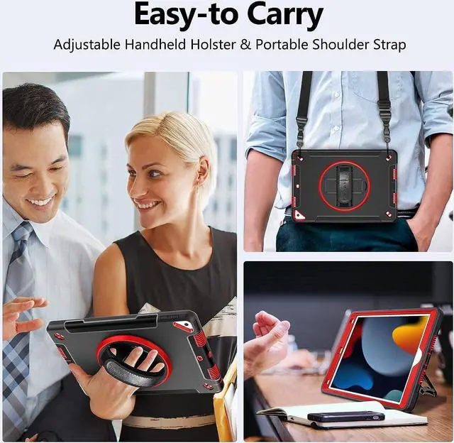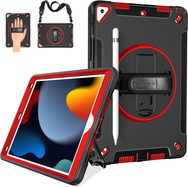 Case for iPad 10.2 9th Generation 2021: Military Grade Heavy Duty Shockproof Cover for iPad 10.2 Inch 2021- Rotating Stand - Hand/Shoulder Strap Red
