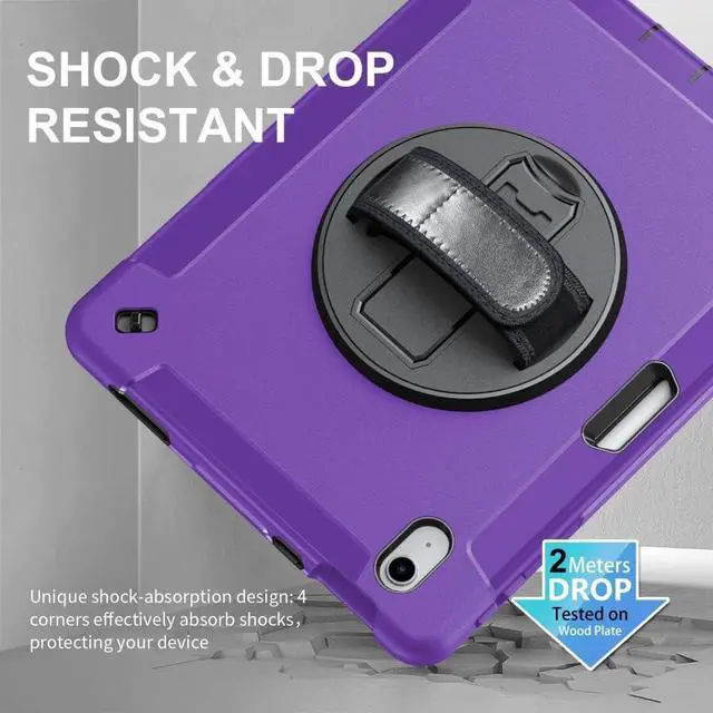 Case for iPad 10th Generation 2022: Military Grade Heavy Duty Shockproof Cover for iPad 10th Gen 10.9 Inch with Stand - Hand/Shoulder Strap-Pencil Holder,Purple