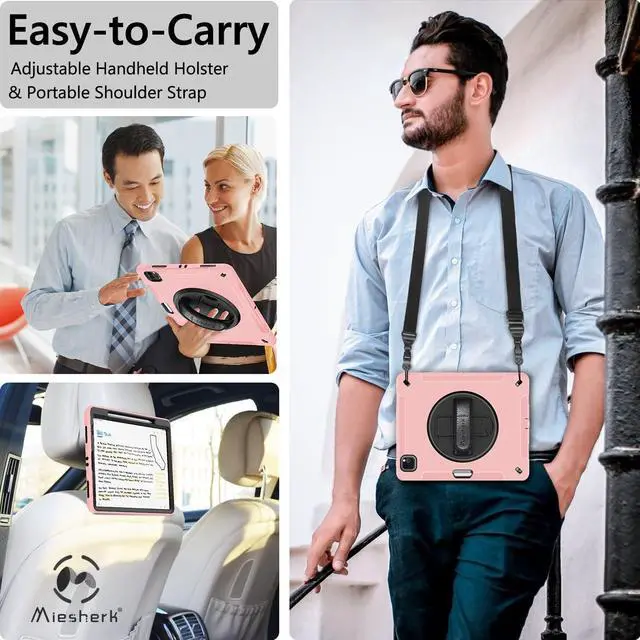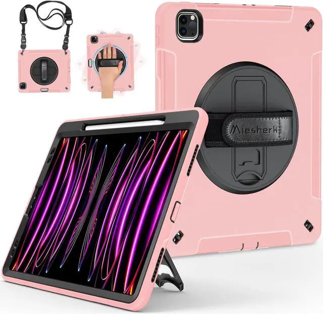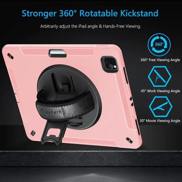 STABLE ROTATABLE KICKSTAND & ADJUSTABLE HANDHELD: iPad 12.9 case 360° rotating foldable stand provides multiple angles(30°/45°/60°), nice to view, typing, or draw. Ergonomically adjustable hand strap easier to hold, the matte coating prevents slipping out of your hand.