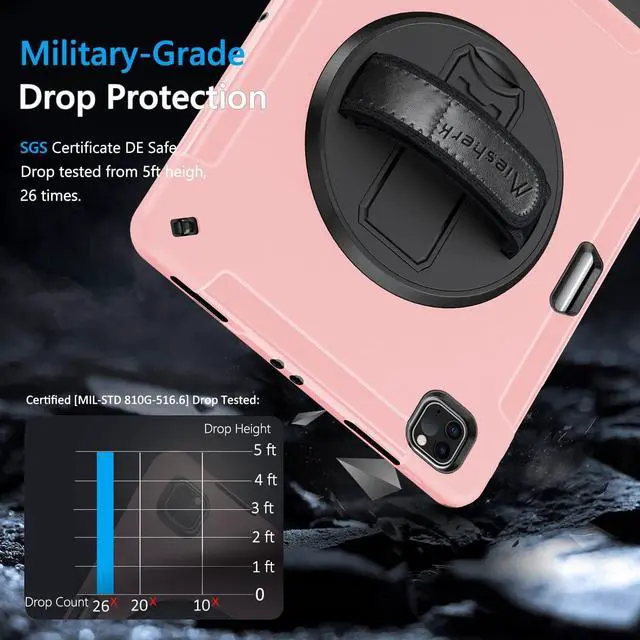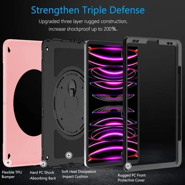 ENHANCED FULL-BODY PROTECTION &10-SHOCK: iPad 12.9 Pro Case exceed 2X Military Grade Drop Test Standard [MIL-STD 810G-516.6], Triple full-body heavy-duty protection provides up to 15ft drop protection, made of 2 durable PC and 1 flexible TPU bumper lasts 10× shock-resistant. Upgrade built-in sponge technology adds extra heat-dissipation.