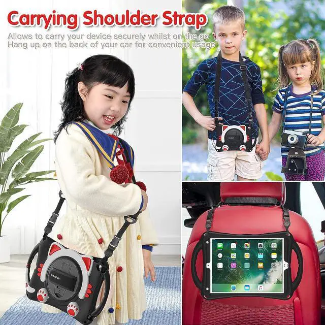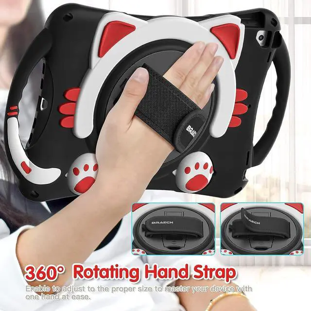 Built-in 360 degree rotating kickstand and adjustable hand strap provide a more flexible and convenient way to use your iPad 10.2/ iPad 10.5, ideal for boys,girls,children.
