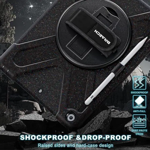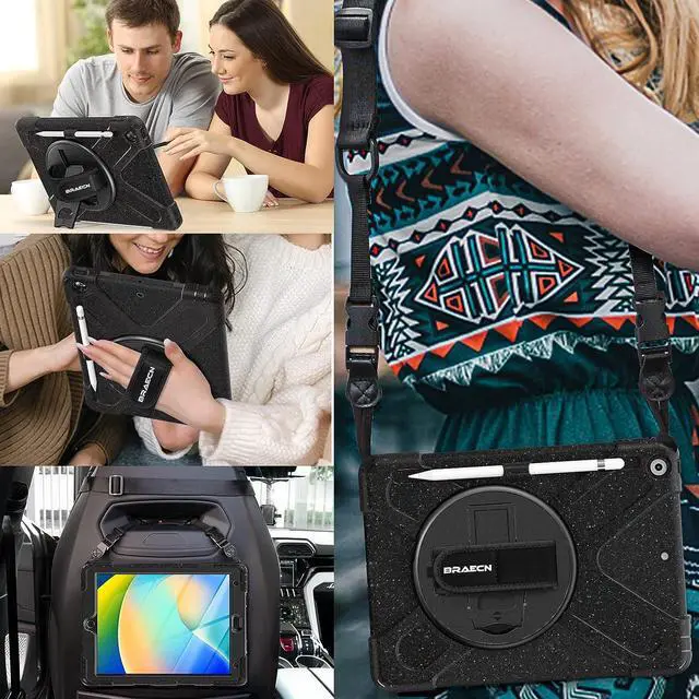 Adjustable & Detachable Carrying Strap Portable Shoulder Strap allows to carry your iPad in landscape/portrait mode securely in outdoors or hang your iPad in kitchen,bedroom,car seat for convenient usage.