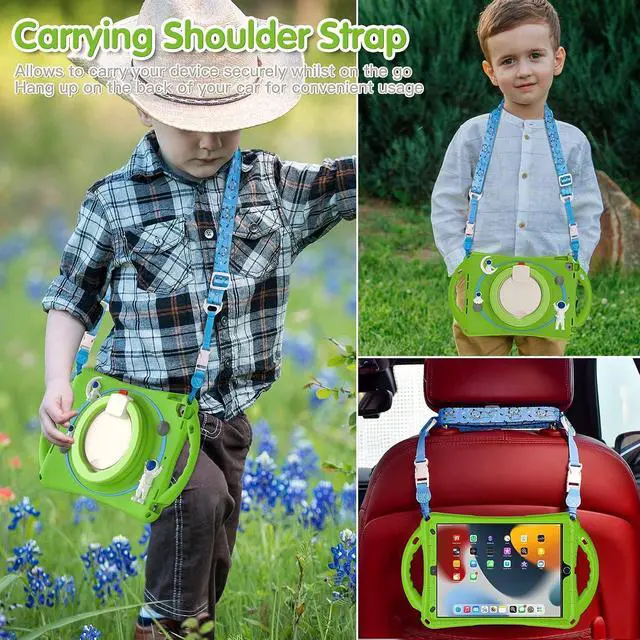 REMOVABLE & ADJUSTABLE CARRYING STRAP- Portable Shoulder Strap allows to carry your iPad 9th Gen Case conveniently when you are at work, on a trip or outdoors. You could even hang it behind the head rest of car seat or wherever you want.