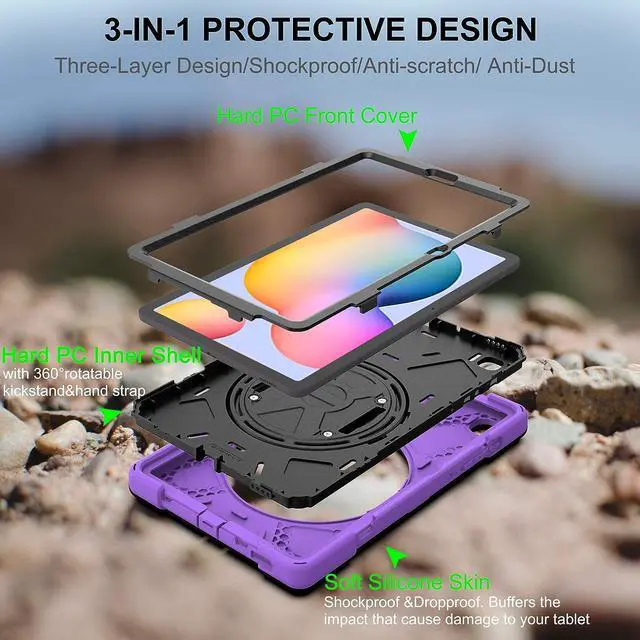 Rugged ProtectionGalaxy Tab S6 lite cases are made of premium hard plastic and soft shock-absorbing silicone. Three layer structure provide good protection from drop and impact. Precise cutout design,easy to access all features without removing cases.