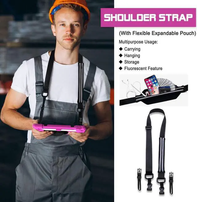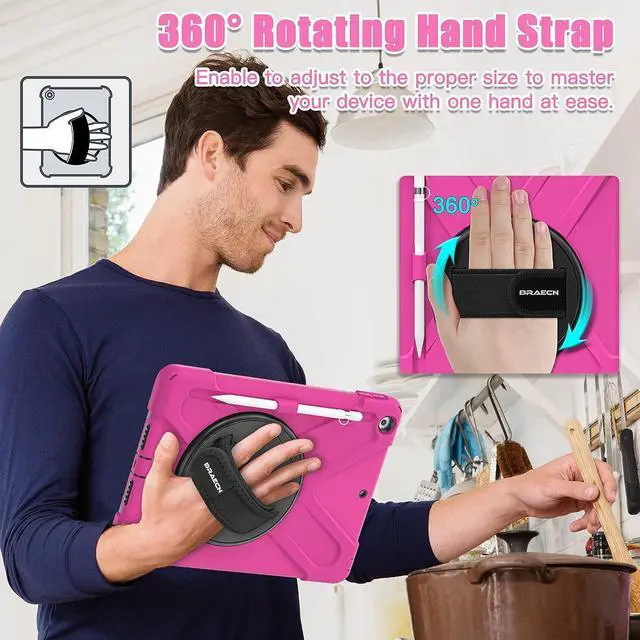 Adjustable & Detachable Carrying StrapPortable Shoulder Strap allows to carry your iPad in landscape/portrait mode securely in outdoors or hang your iPad in kitchen,bedroom,car seat for convenient usage.