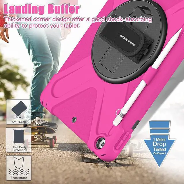 Full Body Protection Made of kid-friendly,non-toxic and shock absorbing Silicone Three layer structure design provides a full around protection against scratch,impacts and shock during daily use. Built-in Apple Pencil Holder and Apple Pencil Cap Holder offer a safe way to store your iPad Pencil while using our case.