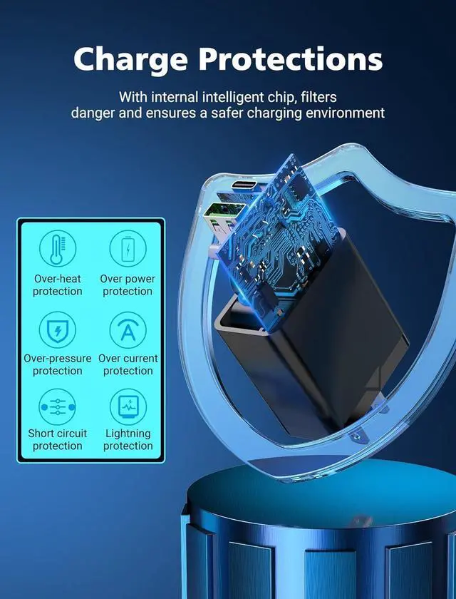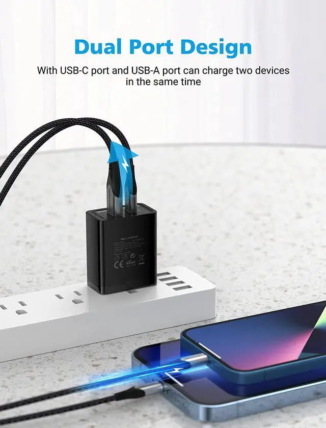 Safe & ReliableThe USB Type C wall charging block has a built-in safety protection system that will protect your devices from overcurrent, overheating, and overcharging. This iPhone wall charger will automatically stop charging when the battery is full. Serve perfectly as a USB plug for your wall outlet.
