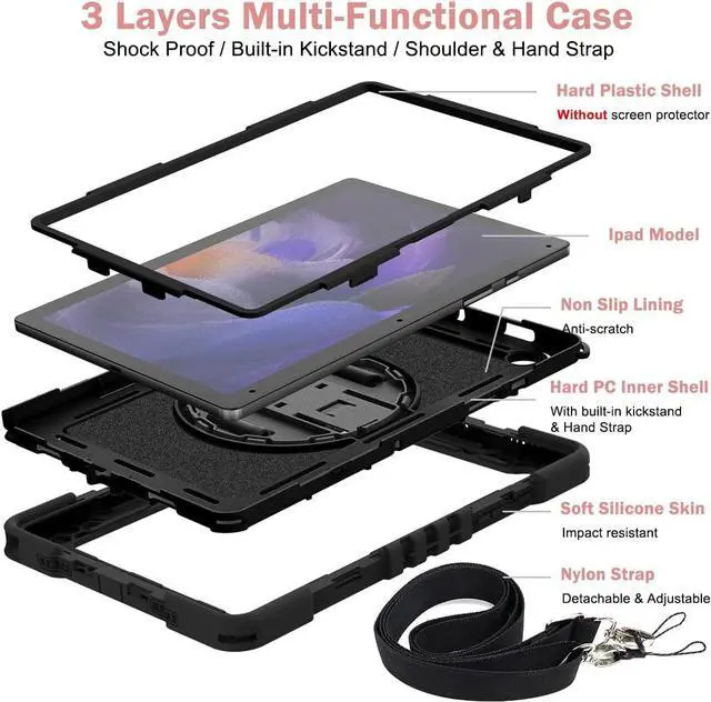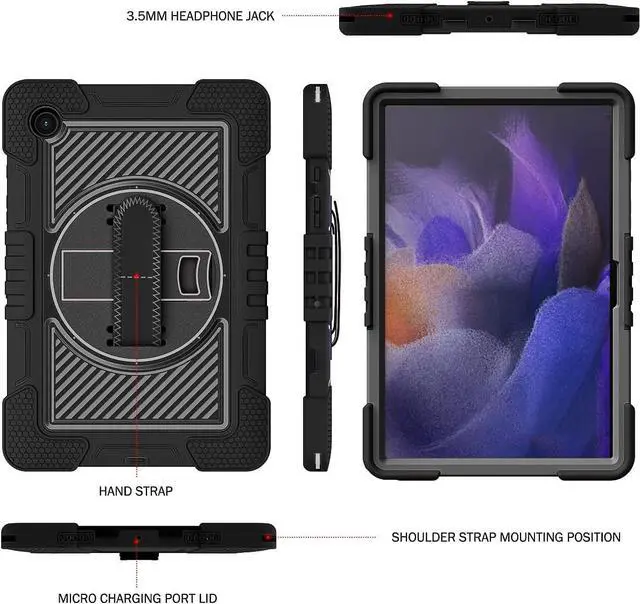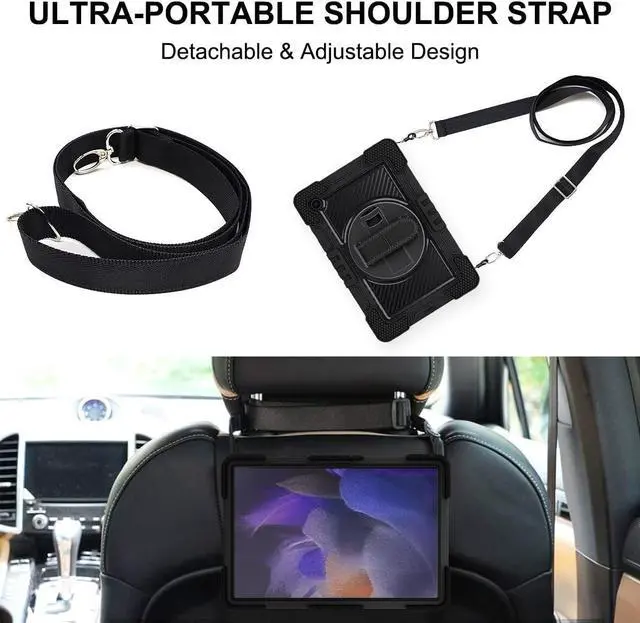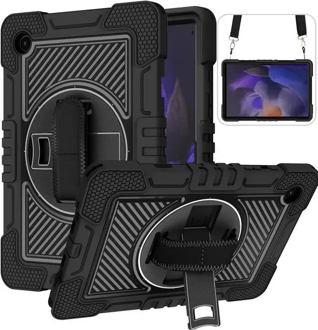 Case for Samsung Galaxy Tab A8 10.5 (2021), Shockproof Military Grade Heavy Duty Cover for Galaxy Tab A8 10.5 (2021) SM-X200 / SM-X205,Pencil Holder Rotating Stand Handle Shoulder Strap
