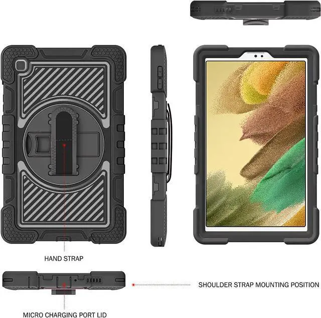 Case for Samsung Galaxy Tab A7 Lite Case 2021, Tab A7 Lite 8.7 Inch Case SM-T225/T220 | Full Body Shockproof Durable Rugged Rubber Protective Case W/Hand Strap Shoulder