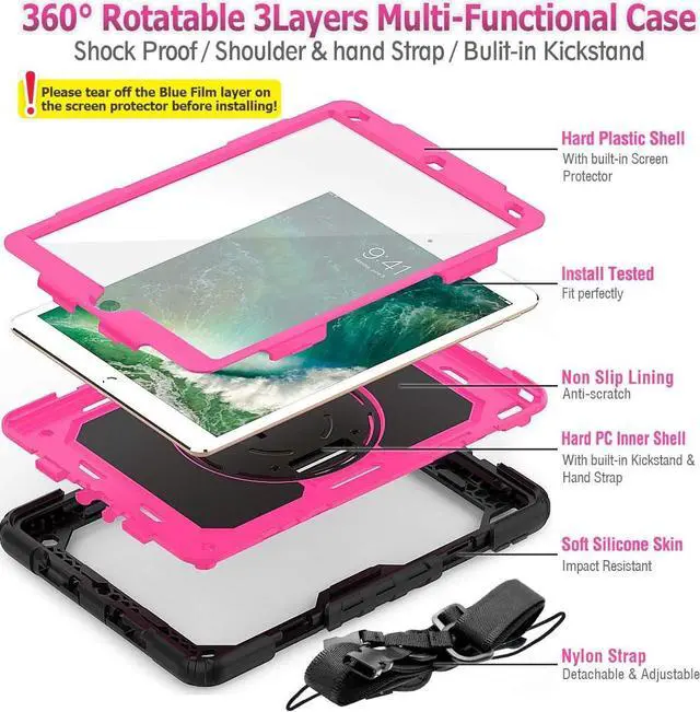 Soft Strap & Portable Shoulder Strap & Rotating Stand: Provide the protection and convenience when you play or work with Pad. Hang it anywhere for your entertainment, makes you using Pad Air 3 2019 / Pro 10.5 case easily. 360 Degrees rotating Kickstand provides convenient viewing, with soft strap, easy to use your Pad in your outdoor travelling, working, gaming with kids.