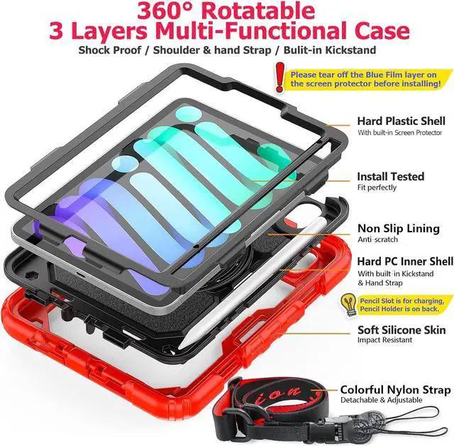 The case allows easy access to all buttons, controls and ports without having to remove the Pad 10th Generation from the case. Shock prevention keeps away from shocks, port covers of the case prevent dust from entering into Pad.