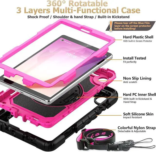 | 360 degree Rotate Stand+ Hand Strap & Portable Shoulder Strap | Provide the securest protection and more convenience when you play or work with Tab M8 (4th Gen) 8-inch 2023. Hang it anywhere for your better entertainment, make your hands free. 360 Degree rotating kickstand provides multi-angle viewing, with soft handle strap, easier to use your M8 Gen 4th in your outdoor travelling, working, gaming with kids.