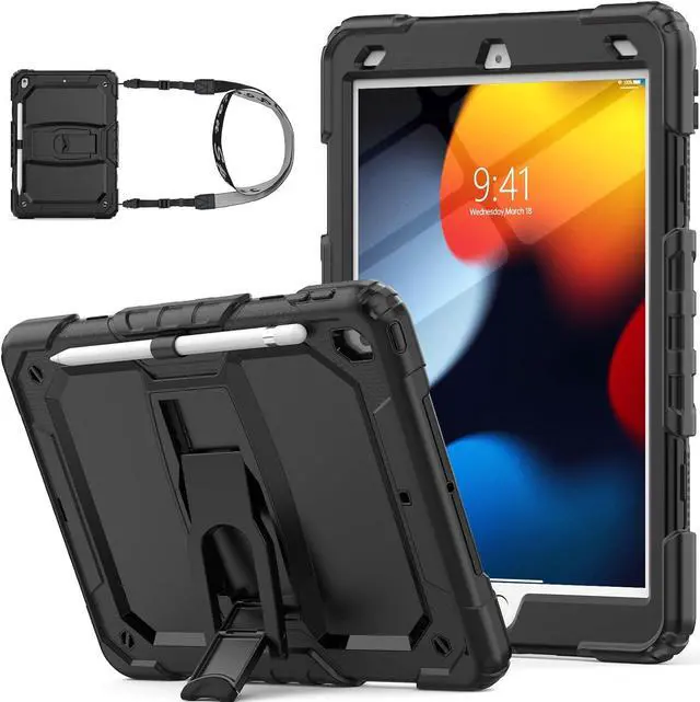 3-in-1 Full Body Protection Design: This case for Pad 10.2 inch is made up with hard plastic front frame, non-slip PC inner shell, soft silicone skin and built-in screen protector, which will keep your Pad 9th/8th/7th generation safe from accidental drops, shocks, bumps or scratches.