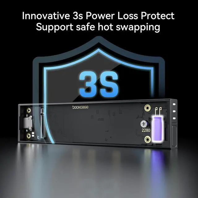 PLP Prevent Writing Data Loss: The Power Loss Protection of DOCKCASE Smart SSD Enclosure provides around 3 seconds of writing time after power failure (the actual time will be affected by the working state and power consumption of the SSD), no data loss, no disk damage.