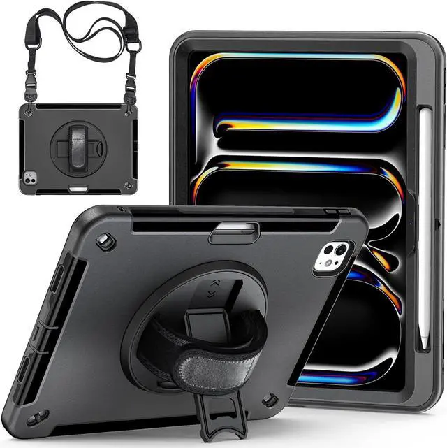 360° Swivel Stand and Adjustable Hand Strap360° rotating foldable stand provides multiple angles, perfect for viewing, typing or drawing. Suitable for kids and adults thanks to the adjustable hand strap. No need to worry tablet slipping out of your hand.