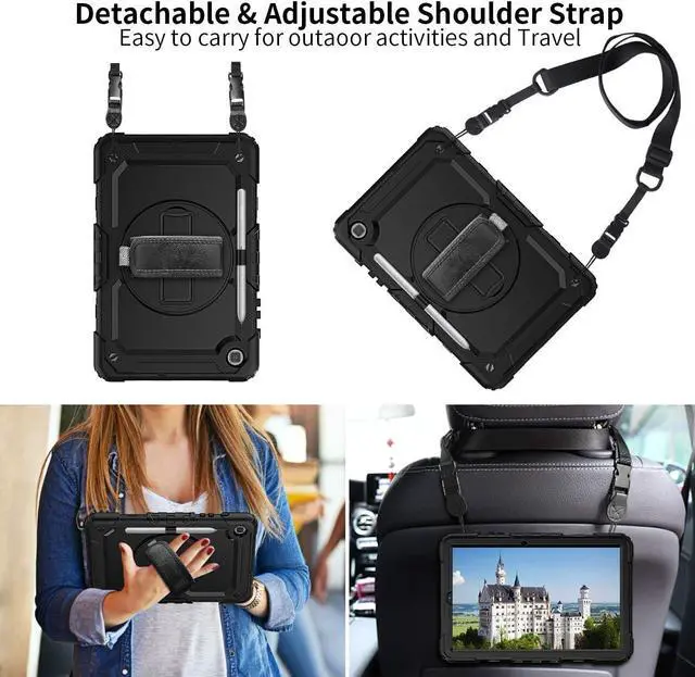 Adjustable Shoulder Strap : Adjustable shoulder grip can be slanted and release your hands completely. This function is perfect for traveling, restaurant ordering, home product introduction, engineer outdoor operation, teacher, etc. Also, the strap allows you to hang up your tablet behind car seat for entertainment for kids.