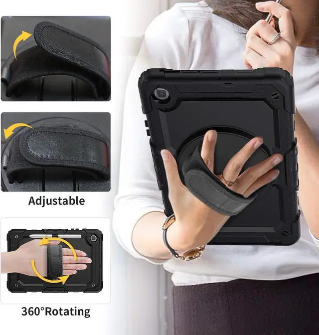 Built-in 360 Rotatable Kickstand and Hand Strap : 360-degree rotating swivel stand supports position of 3 angles(Vertical, Horizontal, and Halfway between), ideal for watching videos, conferences and travelling. Soft rotating handle strap prevents falling of iPad Air 11 6th tablet, featuring convenient use for teachers, students, waiters, doctors, nurses and conference presenters.