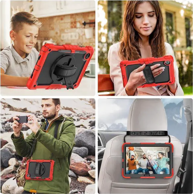 Adjustable Shoulder Strap : Adjustable shoulder grip can be slanted and release your hands completely. This function is perfect for traveling, restaurant ordering, home product introduction, engineer outdoor operation, teacher, etc. Also, the strap allows you to hang up your tablet behind car seat for entertainment for kids.