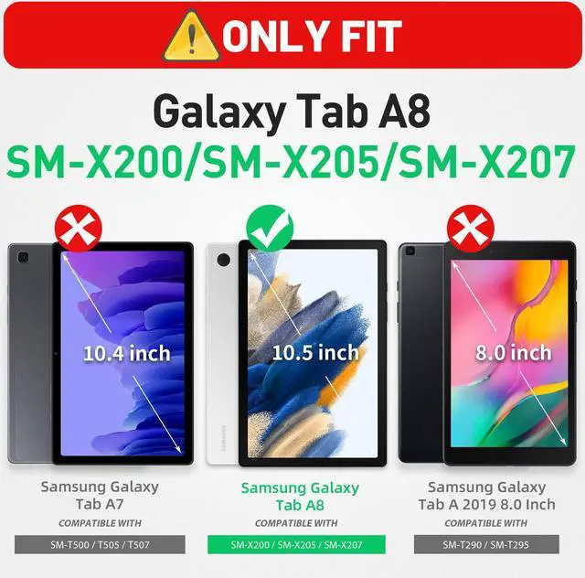 Compatible Tab A8 10.5 inchONLY fits Galaxy Tab A8 Case 10.5\u2019\u2019 2022 released, Model number: SM-X200, SM-X205, SM-X207. The Pen is NOT included!