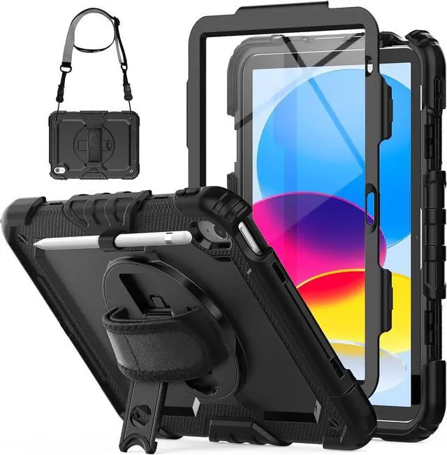 Shockproof & Screen Protector This case for iPad 10.9inch is designed with durable anti shock material, soft silicone, hard plastic frame and built-in screen protector (2 front cover, one with built-in screen protector and one without). The sturdy case for iPad 10 can keep your device safe from shock, drop, scratch or accidental damages in daily use.