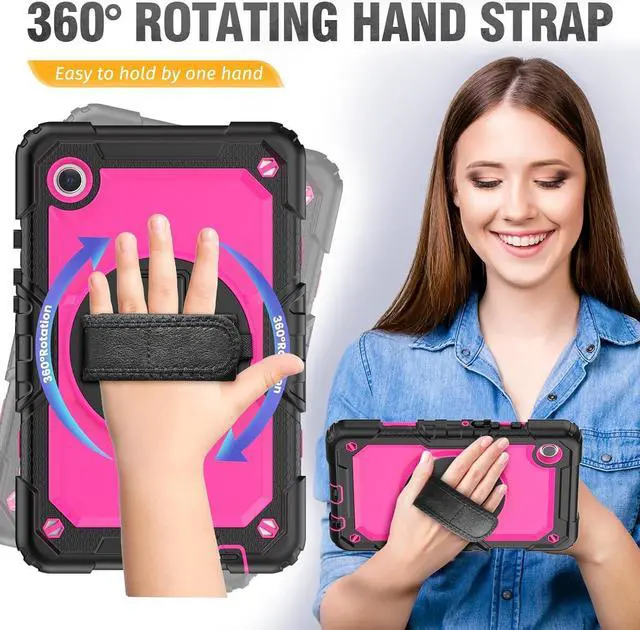 360 Rotating Hand Strap & StandWith adjustable swivel hand strap and stand, you can hold the tab A9 8.7\u2019\u2019 by one hand and find the most comfortable viewing angle you need. The built-in stand provides a stable supports, with viewing/drawing/typing angles you need, and it can be folded up when not in use.