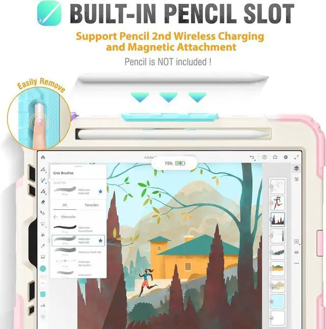 Pencil Holder & Precise Cut-outsAllow easy access to all ports and buttons, the Pencil Slot Holder supports pencil 2nd wireless charge and magnetic attachment, always keep your pencil secure in place, free take the iPad around or put it in to a bag.