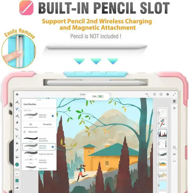 Pencil Holder & Precise Cut-outs \u2014 Allow easy access to all ports and buttons, the Pencil Slot Holder supports pencil 2nd wireless charge and magnetic attachment, always keep your pencil secure in place, free take the 12.9 pro 6th case around or put it in to a bag.