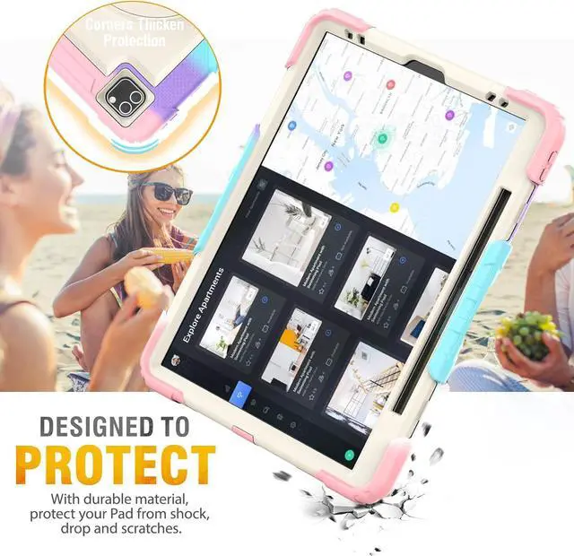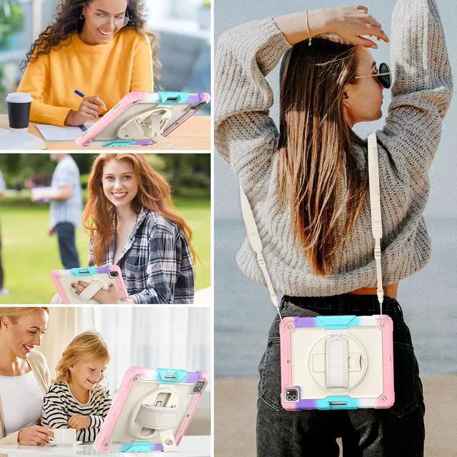 Multifunctional Carrying Strap \u2014 Detachable and adjustable shoulder, both kids and adults can carry the 12.9 inch pad case during hiking, traveling or other activities outside, or hang it on the back of seat for fun when traveling in cars.