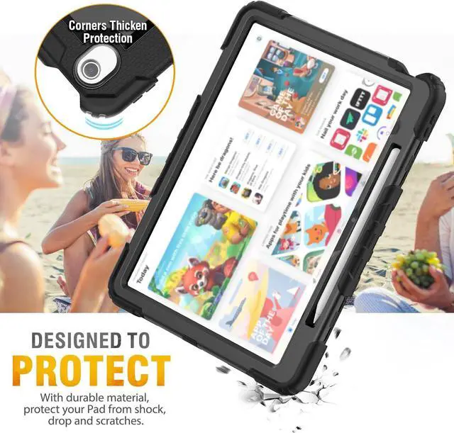 Shockproof+Screen ProtectorThis Air 13 M2 Case is designed with durable anti shock material, soft silicone, hard plastic shell and built-in screen protector. This sturdy pro case can keep your iPad safe from shock, drop, scratch or accidental damages in daily use.