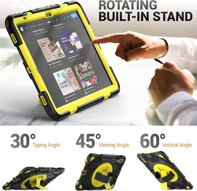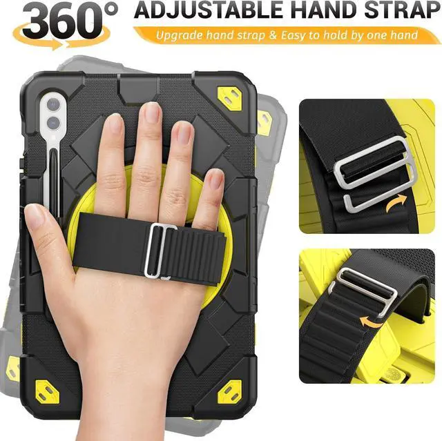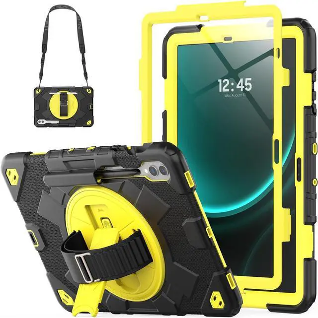 Case for Galaxy Tab S9 Fe + Case/Tab S9 Plus Case 12.4 inch Protective with Screen Protector/S Pen Holder/Rotating Hand Strap, Heavy Duty Galaxy S9 FE+ / S9+ Tablet Case - Yellow