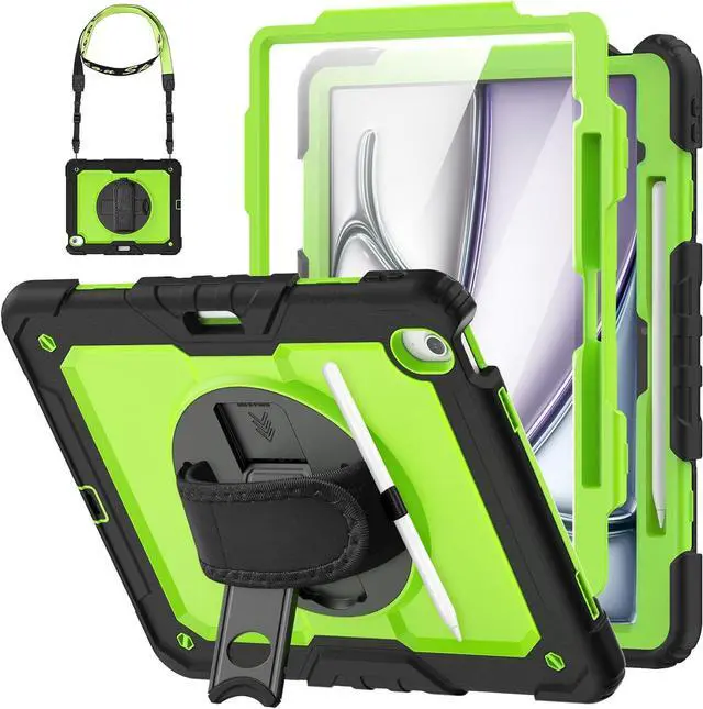 Shockproof+Screen ProtectorThis Air 13 M2 Case is designed with durable anti shock material, soft silicone, hard plastic shell and built-in screen protector. This sturdy pro case can keep your iPad safe from shock, drop, scratch or accidental damages in daily use.
