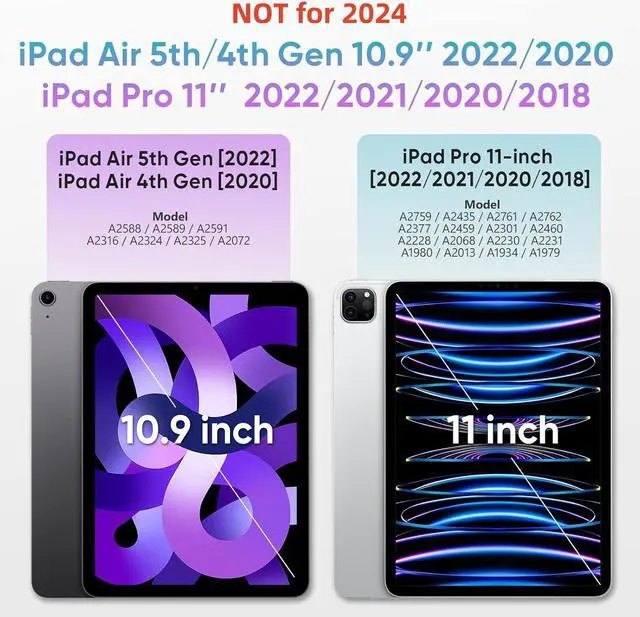 Compatibility Protective case for iPad Pro 11 inch 2022/2021/2020/2018 (NOT 2024 or other model size), the Pencil is NOT included ! (Models : A2435/ A2759/ A2761 / A2762/ A2301/ A2377/ A2459/ A2460/ A2068/ A2228/ A2230/ A2231/ A1934/ A1979/ A1980/ A2013).